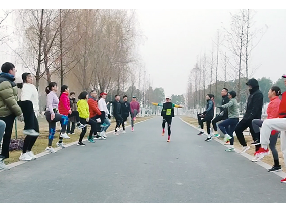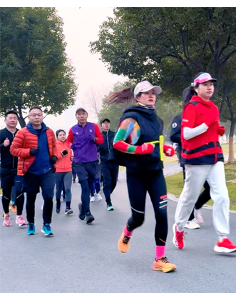上午7:40,伴隨著華米“躍我”跑團(tuán)團(tuán)長(zhǎng)蒯家銀的一聲“開跑”的號(hào)令,新年跑活動(dòng)正式拉開序幕。蒯團(tuán)長(zhǎng)擁有多年的跑步經(jīng)驗(yàn),累計(jì)參加馬拉松賽事超150場(chǎng),去年累計(jì)里程超5000公里,擔(dān)任國(guó)內(nèi)多場(chǎng)賽事的官方配速員,具有非常專業(yè)的跑步知識(shí)與經(jīng)驗(yàn)。蒯團(tuán)長(zhǎng)根據(jù)大家的狀態(tài),不斷的調(diào)整跑步的速度、節(jié)奏,并不時(shí)的提醒大家的安全細(xì)節(jié)。團(tuán)跑的同事們感到了前所未有的輕松、暢快?;顒?dòng)進(jìn)行得如火如荼,整個(gè)蜀西湖仿佛都被熱情和活力所包圍。