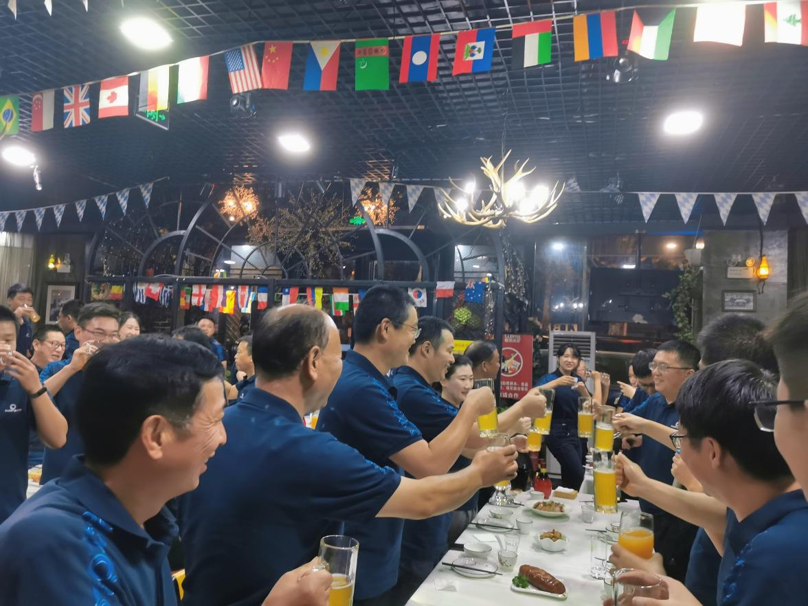 19:38分正式進(jìn)入團(tuán)餐晚宴環(huán)節(jié),歐力杰大家長總經(jīng)理陳總帶頭,其他核心管理層先后逐一發(fā)出了祝酒詞,晚宴上全體家人推杯換盞,熱鬧非凡。