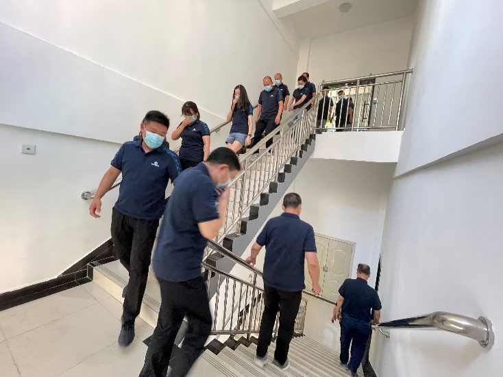 下午5點,隨著總指揮陳總的一聲令下,警報拉響,消防安全演習正式開始。