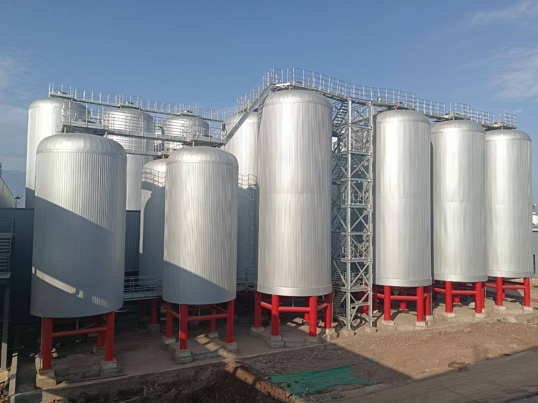 步入項目現(xiàn)場,一座嶄新工廠映入眼簾,其外觀融合了時尚與大氣,盡顯現(xiàn)代工業(yè)美學(xué)。高聳的啤酒發(fā)酵罐與清酒罐巍然屹立,彰顯著工業(yè)生產(chǎn)的磅礴力量。這些設(shè)施與簡約而不失精致的藍色幕墻巧妙搭配,共同構(gòu)成了啤酒生產(chǎn)工廠的獨特視覺語言,成為西昌這座城市一道引人注目的新風(fēng)景線,為這片土地增添了新的地標性建筑。