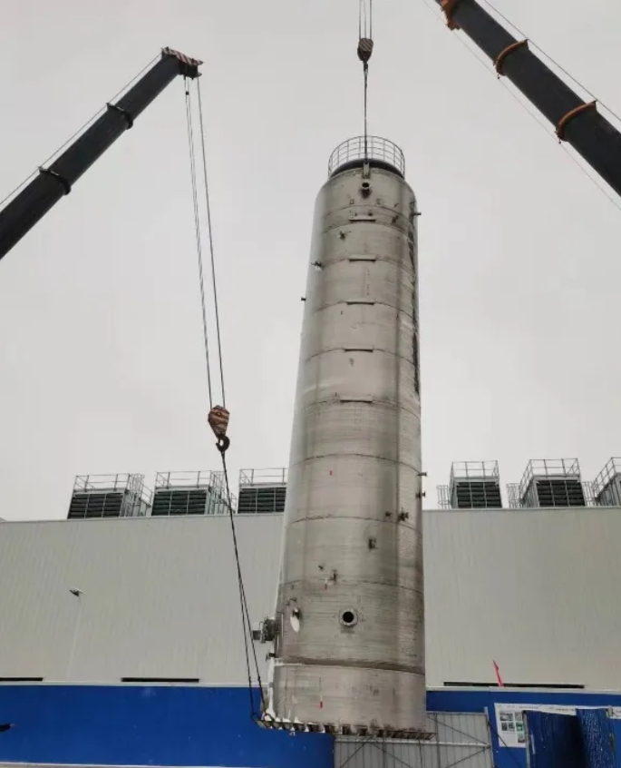 而各類設(shè)備的安裝條件更是十分艱巨,難度系數(shù)非常高,危險性較大,特別是涉及鍋爐整體吊裝和分層水罐的安裝。鍋爐單體最大重量45T,分層水罐43T,高度20米左右,都屬于超過一定規(guī)模的,具有重大風(fēng)險的吊裝工程,必須編制專項吊裝方案,并請專家論證后才能實施。在項目組的精心籌劃與公司領(lǐng)導(dǎo)的大力支持下,項目安全經(jīng)理劉志強同志在39度高溫與零下十幾度嚴寒的極端天氣下,毫不畏懼,全程現(xiàn)場監(jiān)督指導(dǎo),四臺鍋爐與分層水罐分別于2023年7月份與2023年11月底,安全圓滿的完成了吊裝任務(wù)。